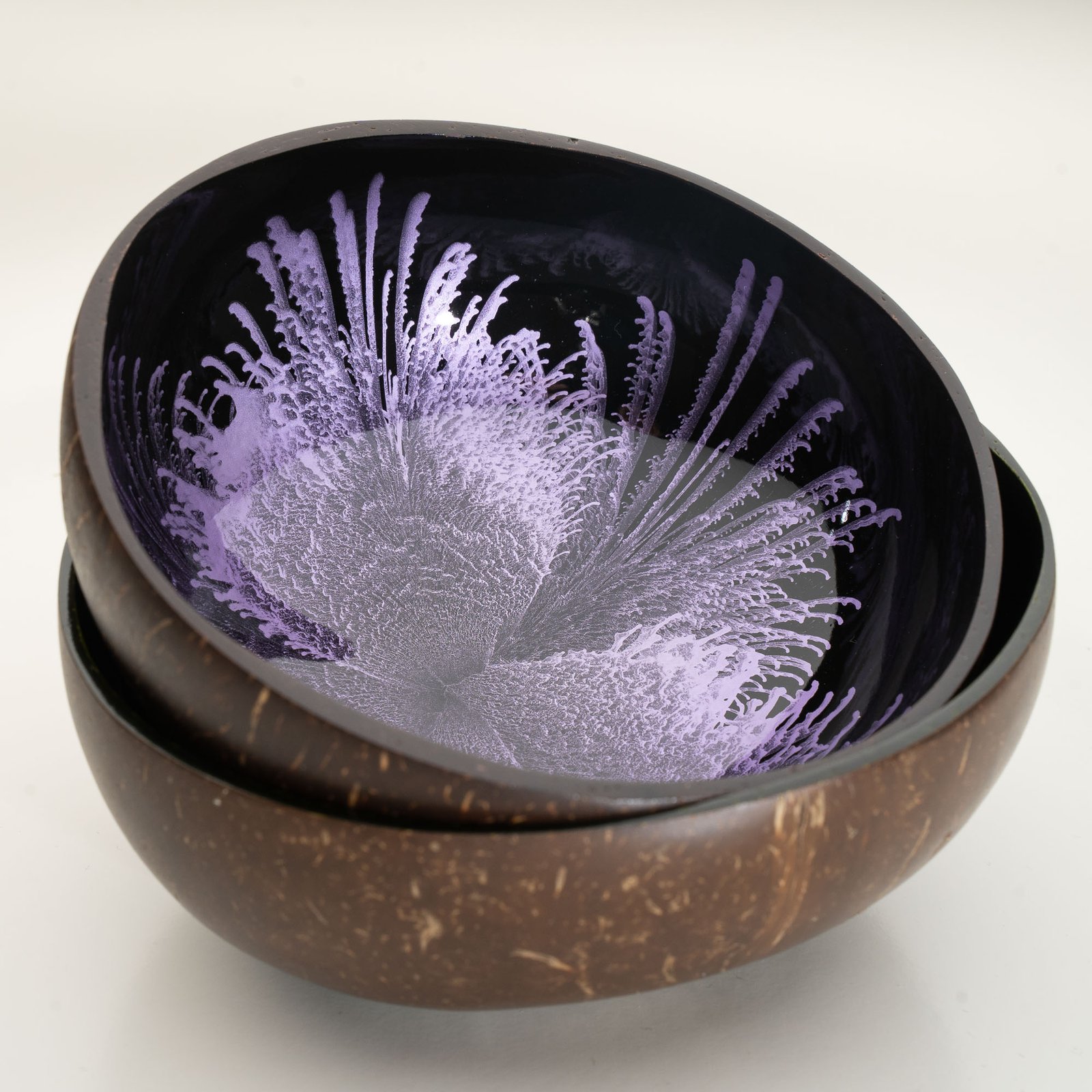 Home Coconut Colour Lacquered Bowls Feather Purple Medium